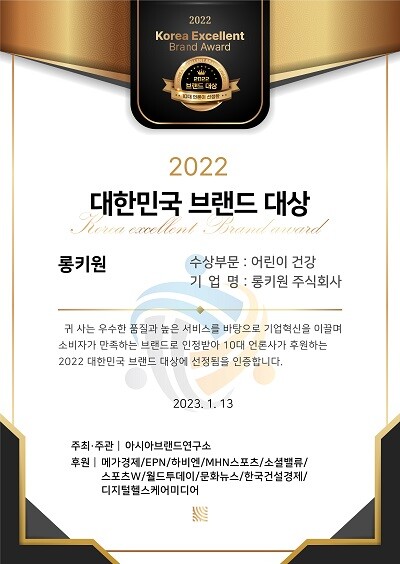 | ▲롱키원, 어린이 성장 부문 우수 브랜드 선정 |