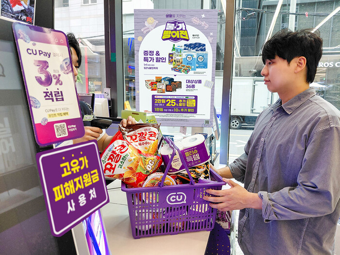 우선 CU는 업계에서 가장 빠르게 이달 21일부터 5월31일까지 약 40일간 통합 할인 행사를 진행한다. 행사 상품은 월 통합 행사 2400여 종에 라면, 즉석밥, 주류, 정육, 과일 등 생활 밀착형 품목 50여 종을 추가해 총 2500여 종 규모로 구성했다. 번들 중심 대용량 할인과 초특가 상품을 전면에 내세운 것이 특징이다.