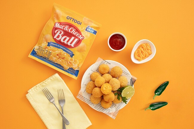 | ▲오뚜기가 진한 체다치즈의 풍미를 담은 ‘맥앤치즈볼’을 출시했다./사진=오뚜기 제공 |