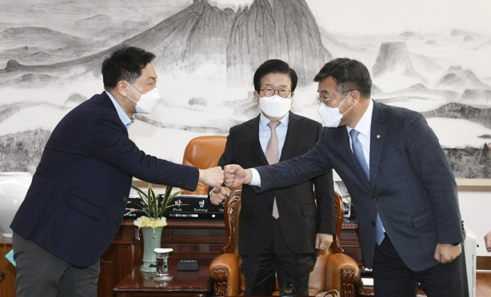 민주당 윤호중, 국민의힘 김기현 원내대표는 이날 오전 국회의장실에서 박병석 국회의장이 참석한 가운데 회동한 뒤 추경안 합의처리 방침을 밝혔다.