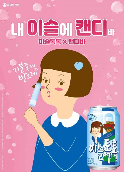 [소셜밸류=소민영 기자] 하이트진로의 과일탄산주 ‘이슬톡톡’과 빙그레의 아이스크림 ‘캔디바’가 만났다.