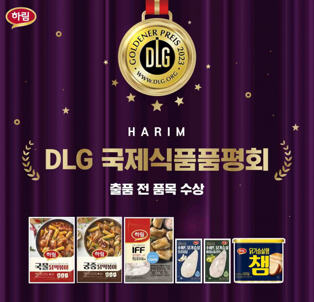 2023 DLG 국제식품품평회에서 금메달을 수상한 하림 제품은 △국물 닭떡볶이 △궁중 국물 닭떡볶이 △광양식 닭불고기 △광양식 닭불고기 순한맛 △한입쏙 닭가슴살 블랙페퍼 △IFF 핑크솔트 한입 닭다리살 △IFF 핑크솔트 한입 닭가슴살 △IFF 한입쏙 닭가슴살 오리지널 △IFF 한입쏙 닭가슴살 청양고추 △한입쏙 닭가슴살 스파이시 △닭가슴살 오리지널 △닭가슴살 갈릭 △수비드 닭가슴살 오리지널 △수비드 닭가슴살 블랙페퍼 △수비드 닭가슴살 바질&올리브 △수비드 닭가슴살 레몬 △하림e닭 한입 닭가슴살 바질&올리브 △하림e닭 한입 닭가슴살 블랙페퍼 △하림e닭 닭가슴살 블랙페퍼 △하림e닭 닭가슴살 100% 등이다. 은메달은 △닭다리살 양념구이 매콤한맛 △닭가슴살햄 챔 △닭가슴살햄 챔 할라피뇨 △닭가슴살 블랙페퍼 △닭가슴살 훈제 △하림e닭 닭가슴살 갈릭, 동메달은 △닭다리살 양념구이 마일드 제품이 각각 수상했다.