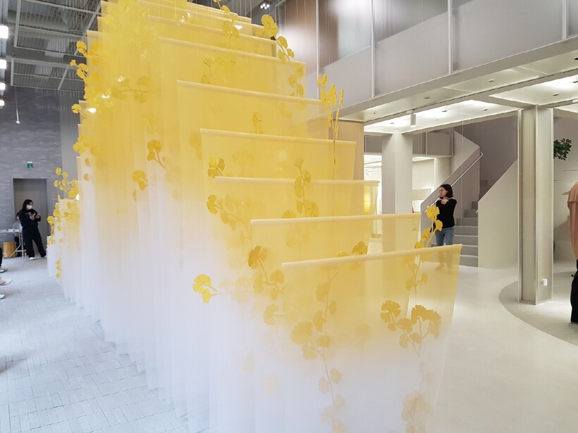 이외 눈에 띄는 것은 작품 전시(시각)다. 현재는 1층 카페 공간 앞에 한지로 은행나무를 형상화한 양지윤 작가의 '처음 만나는 가을'을 전시한다. 다양한 취향을 상징하는 수백 개 잎을 지닌 은행나무이지만 단일종으로 살아온 은행나무를 통해 정체성 '나다움'을 강조하는 작품이다.