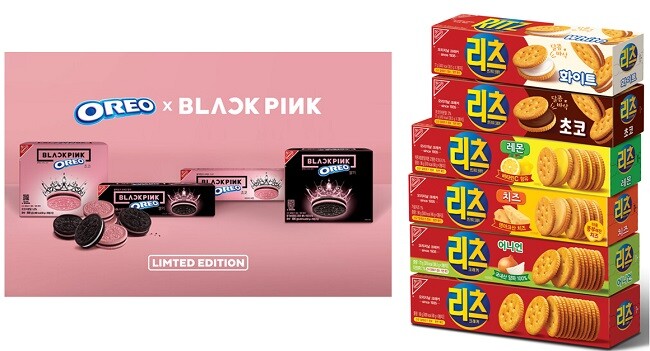 | ▲오레오와 블랙핑크의 콜라보한 제품 모습과 리츠 제품 모습/사진=동서식품 제공 |