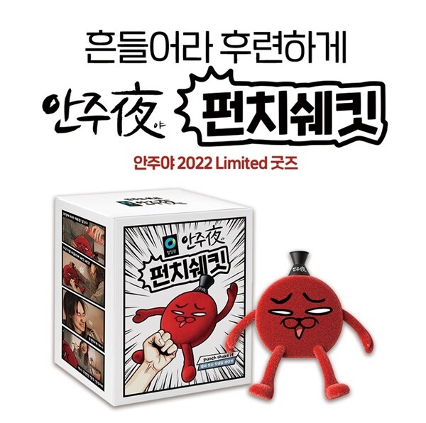 ‘펀치쉐킷’은 네이버쇼핑, 11번가, G마켓 등 국내 주요 온라인 유통채널에서 안주야(夜) 제품과 묶음 상품으로 판매된다. 또 오는 8월부터는 CU, 이마트24, 세븐일레븐 등 편의점에서 안주야(夜) 제품 5개를 구입하면 ‘펀치쉐킷’을 증정하는 이벤트가 진행될 예정이다.