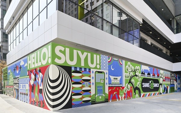 이번 쉐이크쉑 수유점은 국내와 해외에서 기하학적 패턴을 활용한 작품으로 인지도를 쌓고 있는 일러스트레이터 ‘권도희’와 협업해 호딩 아트(Hoarding Art, 공사장 주위의 임시 가림막에 그리는 작품)를 선보인다.