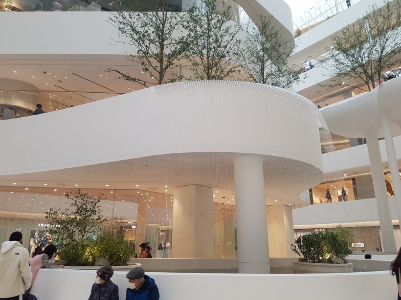 | ▲현대백화점그룹은 '더현대' 브랜드로 유통 불모지 '여의도'에 이어 '광주' 출점을 가장 먼저 가시화했다. 여의도 더현대 서울 내부 2m 인공 폭포 '워터폴 가든' 전경. /사진=이호영 기자. |
