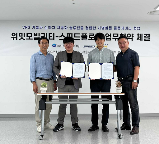 | ▲위밋모빌리티, 상하차 자동화 솔루션 기업 ‘스피드플로어’와 MOU |