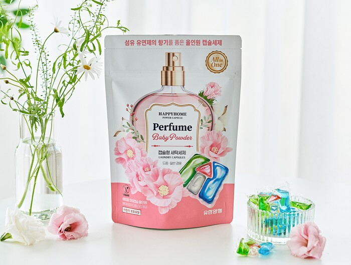 ‘해피홈 파워캡슐 올인원’은 세척·탈취·유연·향기 등 네 가지 기능을 하나에 담은 올인원 캡슐형 세탁세제다. 간단하게 던져서 사용하는 사용 편의성은 물론 세탁세제부터 섬유유연제까지 한 번에 사용 가능한 단계 편의성을 가진 신개념 세탁세제라는 설명이다.