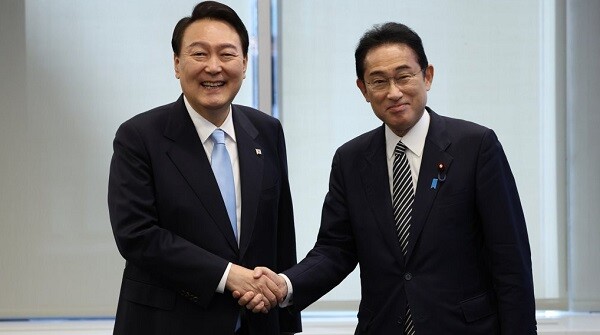 [소셜밸류=소민영 기자] 윤석열 대통령이 현지시간 21일 미국 뉴욕에서 일본 기시다 후미오 일본 총리를 만나 한일 정상 약식 회담을 가졌다.