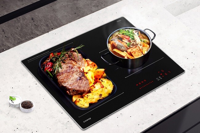 인덕션 전용 모델은 최대 3,400W의 고화력으로 빠르고 강력하게 요리를 완성한다. 두 개의 인덕션 화구는 연결해 사용할 수 있어 넓은 팬, 사각그릴 등 부피가 큰 용기도 문제 없이 조리 가능하다. 사용하지 않을 땐 조작부 아이콘이 드러나지 않는 히든형 디스플레이를 적용해 깔끔한 주방 인테리어를 구현할 수 있다.