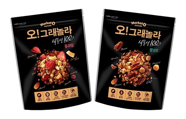 마켓오네이처 오!그래놀라 식물성 100%는 순식물성 원료만으로 만들어 건강한 소비를 지향하는 소비자들이 고단백·고식이섬유의 균형 잡힌 한 끼를 챙길 수 있도록 만들었다는 설명이다.
