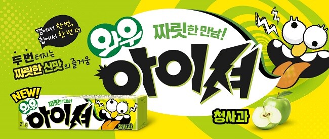 신제품 와우 아이셔는 상큼한 청사과맛 껌과 껌에 박혀있는 사워칩에서 두번 느끼는 짜릿한 신맛에 풍선 부는 재미까지 동시에 즐길 수 있다. 오리온의 차별화된 껌캔디 연구개발 노하우로 바삭하게 씹히는 사워칩이 천천히 녹으면서 새콤함이 오래 유지되도록 구현해 씹는 재미를 더했다.