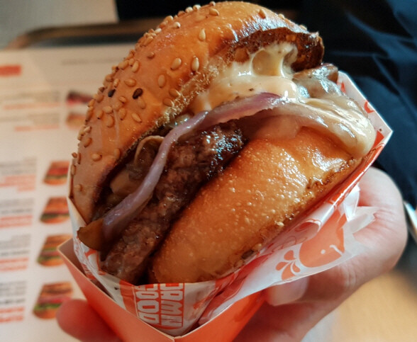 슈퍼 싱글 버거 경우 전반적으로 짜지 않고 담백한 육즙이 특징이다. 달콤한 스위트 포테이토 프라이즈와 잘 어울린다.
