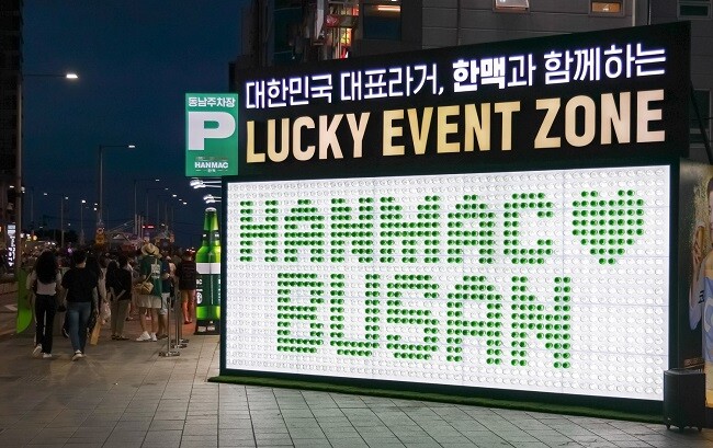 해운대 구남로 일대에 대표 맛집들과 제휴해 만든 한맥 추천 ‘부산 맛집지도’를 나눠줘 누구나 쉽게 맛집을 찾을 수 있게 했다. 팝업 홍보관 전면에는 한맥과 카스 공병을 활용한 대형 LED 전광판을 만들고 내부에는 포토존을 제작해 지나가는 시민들의 시선을 끌고 있다.