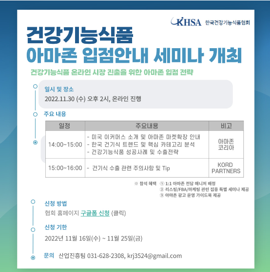30일 한국 건강기능식품 아마존 입점 전략 세미나에서는 한국(K) 식품 성장세를 짚어봤다. K 식품은 농산물에서 시작, 축산물까지 다방면에서 꾸준히 미국 식품 수출을 넓혀왔다.