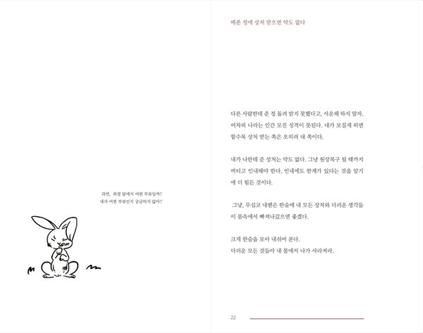"책 표지에서도 느끼실 수 있겠지만, 완벽하지 못한 한 인간이 사회에 나가 겪으면서 생기는 에피소드를 저의 문장으로 표현한 에세이 단편집입니다. 우리가 살아가는 모든 시간과 상황들이 엄마의 뱃속에서 나와 처음 경험하는 일들이 많잖아요. 하지만 어느 정도 성인이 되면 처음부터 완벽하지 못한 자신의 능력치를 탓하거나 다른 이의 가시 돋친 말들로 인해 주눅 드는 경우도 있고요. 그런 경험들이 <모든 시작은 서툴다.>에 표현되어 있습니다. 다른 이들이 저의 글을 통해 사회에서 겪게 되는 여러 가지 상황들을 간접 경험하며, 더 좋은 선택을 했으면 하는 바람을 담은 책입니다."
