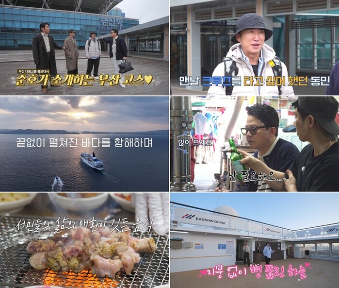 부산역에 모인 멤버들은 들뜬 분위기 속에서 크루즈 여행에 대한 기대를 드러낸다. 특히 장동민은 “배를 타고 떠나는 여행이 드디어 실현됐다”며 설렘을 감추지 못한다. 이후 이들은 남은 시간을 알차게 보내기 위해 차이나타운과 자갈치 시장을 방문하기로 결정한다.