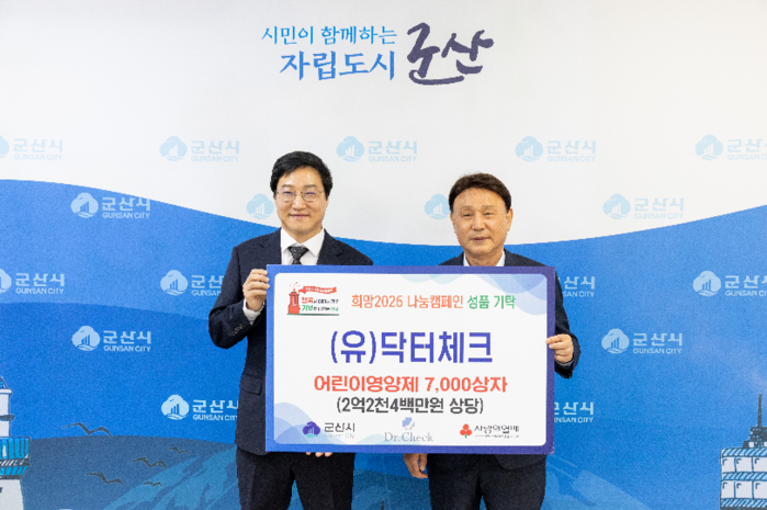 사회가치 공유 언론-소셜밸류 - 닥터체크, ‘희망 2026 나눔캠페인’ 참여… 군산시청에 어린이 영양제 기탁
