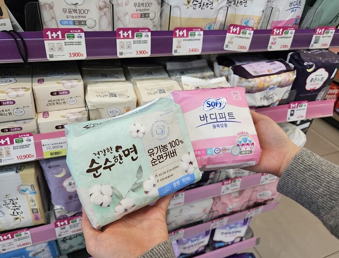 CU는 바우처 사용이 가능한 점포와 자체 앱 ‘포켓CU’를 통해 생리대, 위생팬티 등 60여 종의 위생용품을 판매하고 있다.