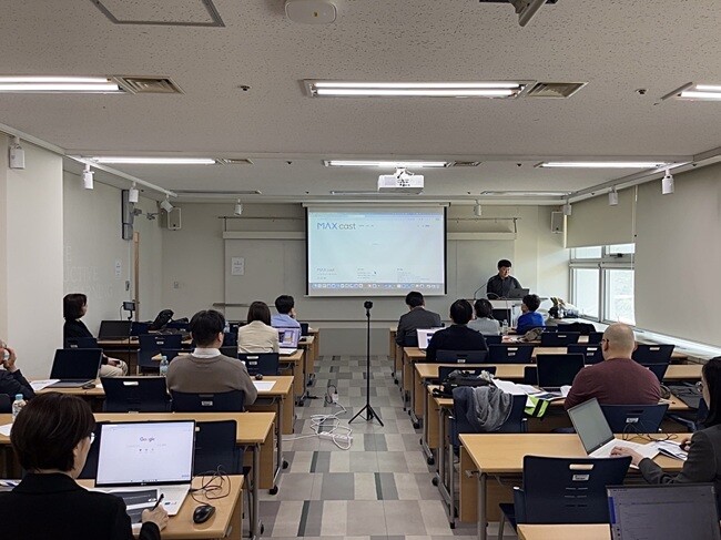 먼저 지난 22일에 진행된 1차에서는 매직에꼴 최재규 대표를 비롯해 현철 부총장을 비롯한 전임교원 다수가 참석했다. 체험에서 매직에꼴 최재규 대표가 AI 강의 지원 플랫품 ‘맥스튜터(MAX Tutor)'의 핵심 기능과 실제 교육 현장 적용 사례를 소개했다.